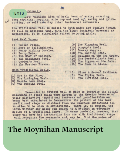 The terminology used by Moynihan, his general comments, his advice on teaching techniques and the necessary knowledge of the music are of interest decades later. The surviving pages include Introduction (3 pages), Memorandum (pages 1–4), Descriptions (annotations of six reel steps, pages 5–12) and Conclusion (pages 13–14).
